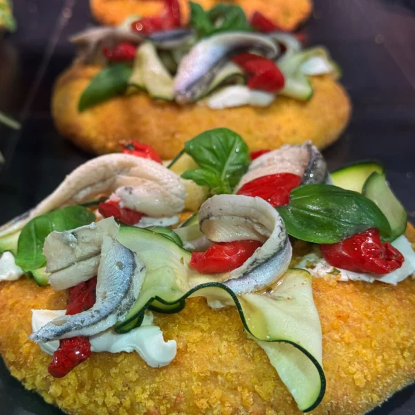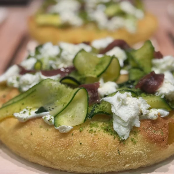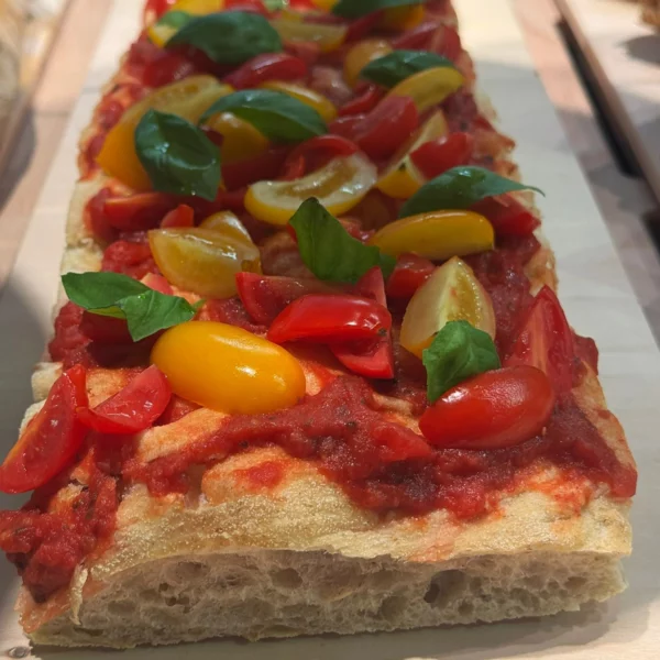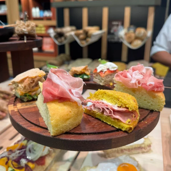 La degustazione inizia con la Pagnotta Sincera accompagnata da gazpacho di pomodoro e prosegue con la Focaccia Soffice con prosciutto crudo e mozzarella. Gli assaggi continuano con la Tavolozza Mora con zucca, porcini, friarielli e giovacco e la Tutta Biga servita con salsa di pomodoro e fiordilatte. Per concludere, la Focaccia Sfiziosa, farcita con mortadella, stracciatella e pistacchio.