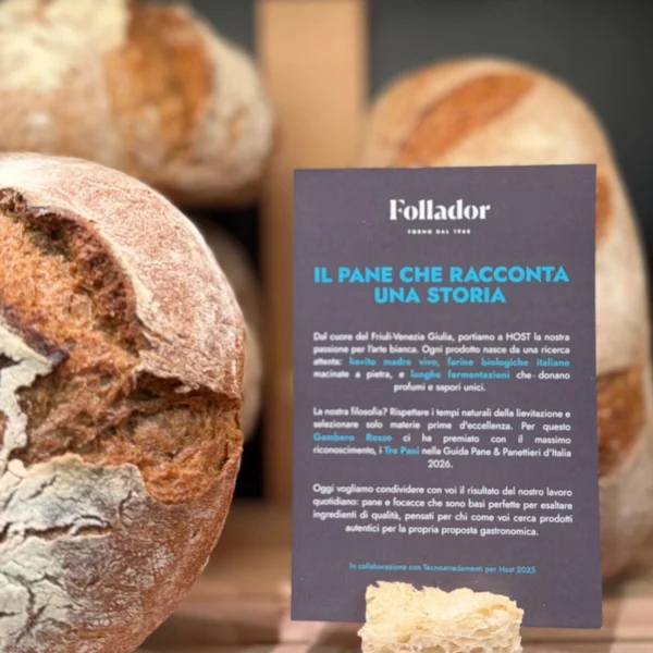 “Siamo orgogliosi di aver partecipato a HostMilano, vetrina di riferimento per l’ospitalità e il food retail, insieme a Tecnoarredamenti, realtà pordenonese come la nostra e partner di fiducia da anni. Apprezziamo il loro modo di mettere al centro le esigenze del cliente, proponendo soluzioni innovative che combinano estetica, funzionalità e tecnologia. A chi è venuto a trovarci abbiamo proposto una selezione dei nostri pani, focacce e basi per pizza presentati in un ordine di degustazione studiato per esaltare consistenze e sapori, e accompagnati da una selezione delle migliori eccellenze nazionali e del nostro territorio.” afferma Antonio Follador.