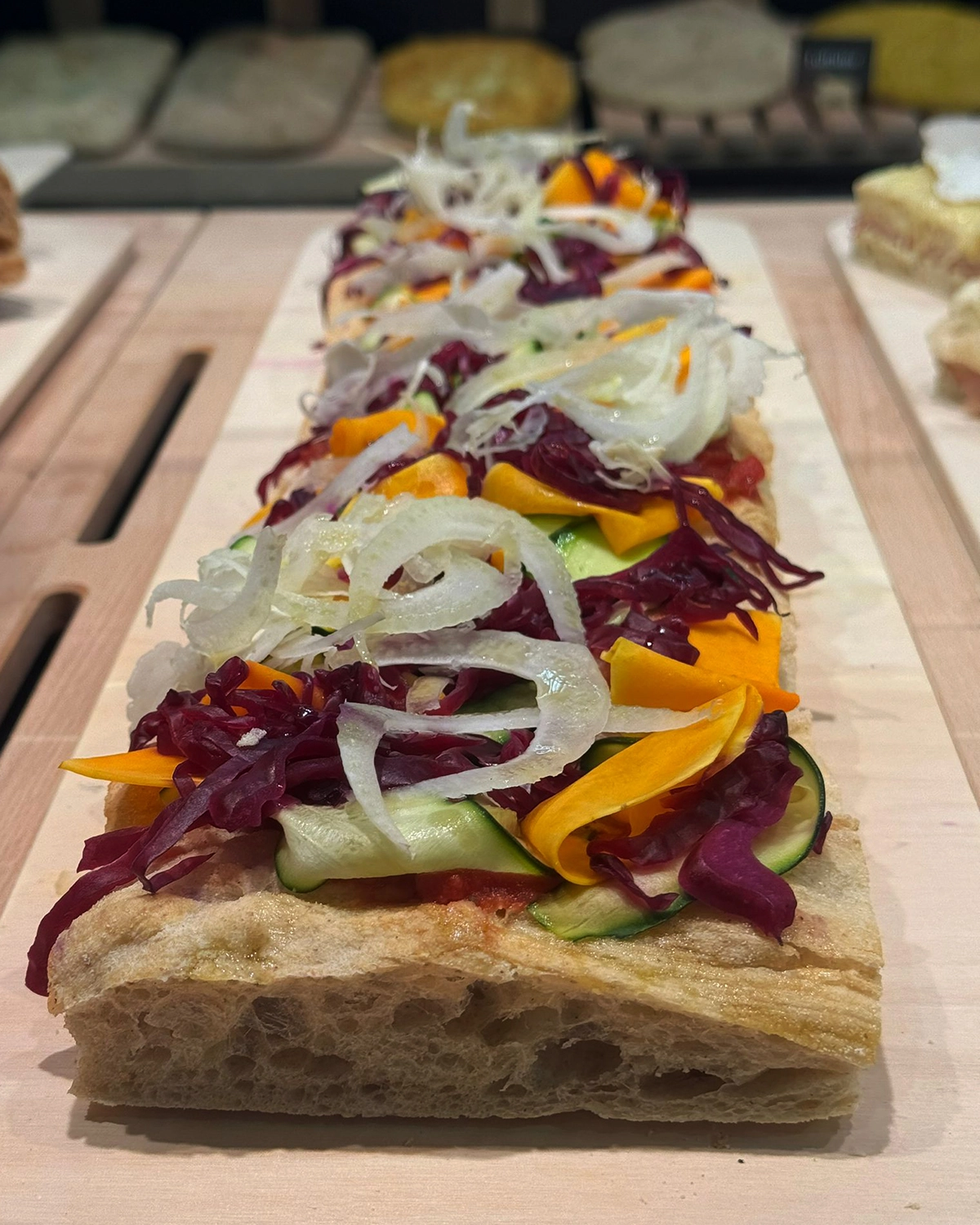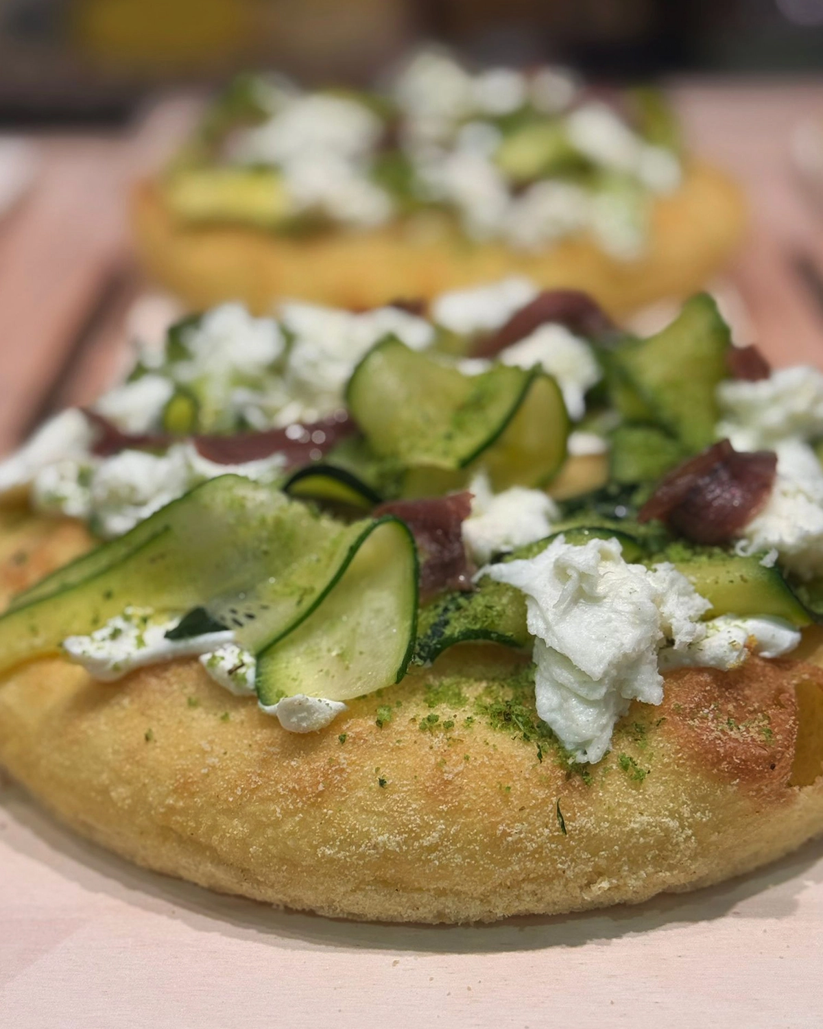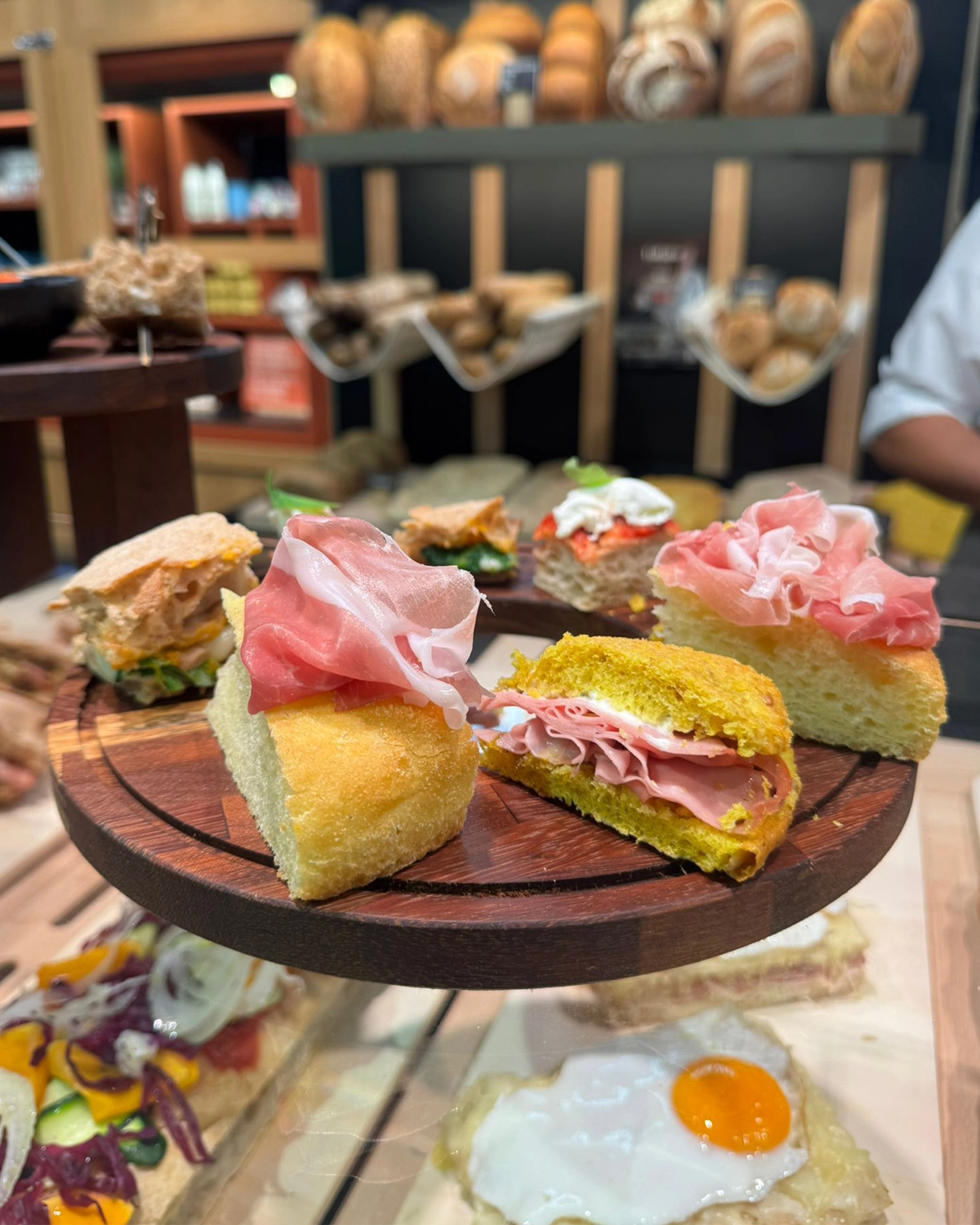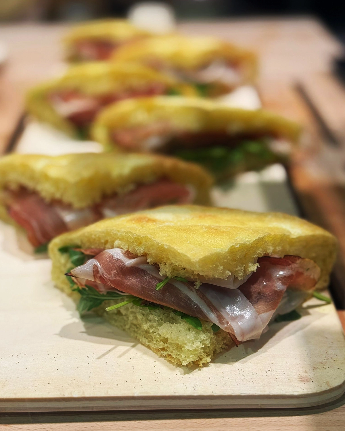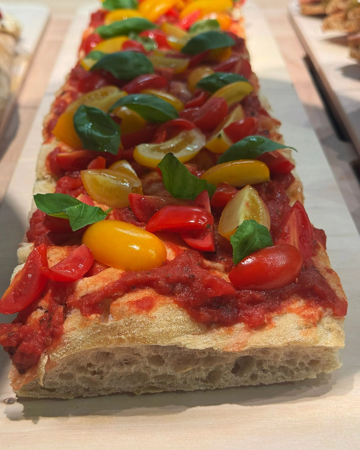 La degustazione inizia con la Pagnotta Sincera accompagnata da gazpacho di pomodoro e prosegue con la Focaccia Soffice con prosciutto crudo e mozzarella. Gli assaggi continuano con la Tavolozza Mora con zucca, porcini, friarielli e giovacco e la Tutta Biga servita con salsa di pomodoro e fiordilatte. Per concludere, la Focaccia Sfiziosa, farcita con mortadella, stracciatella e pistacchio.