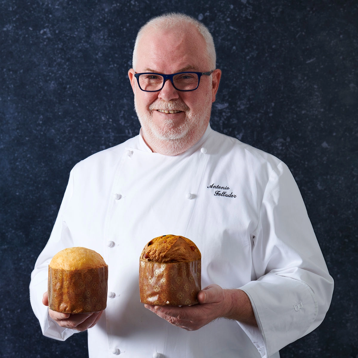 Da oltre vent’anni Antonio Follador lavora la pasta viva del lievito madre con la stessa passione del primo giorno, selezionando farine naturalmente robuste, burro da centrifuga, panna fresca e vaniglia Bourbon del Madagascar per dare vita a un pandoro dalla morbidezza inconfondibile e dalla fragranza avvolgente.
