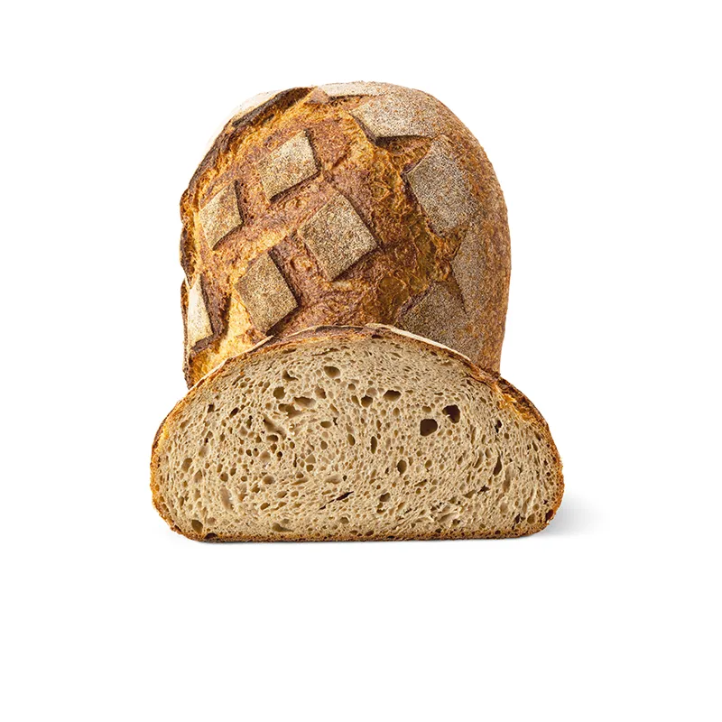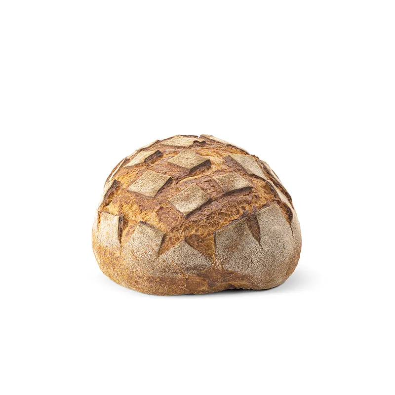 Grande pagnotta di farina di grano duro integrale macinato a pietra, dalla fibra molto fine che permette una facile masticazione, liberando un profumo intenso e armonioso. Crosta dorata e saporita, interno umido e compatto.
