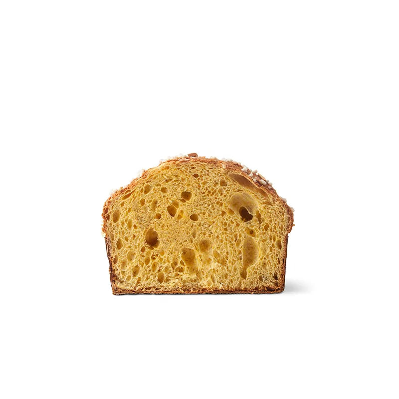 Soffice e leggera, lavorata con lievito madre da rinfresco, ha il profumo di vaniglia bourbon del Madagascar e un sapore avvolgente. Di grande raffinatezza se gustata tale e quale, intrigante in accompagnamento, perfetta in ogni occasione.